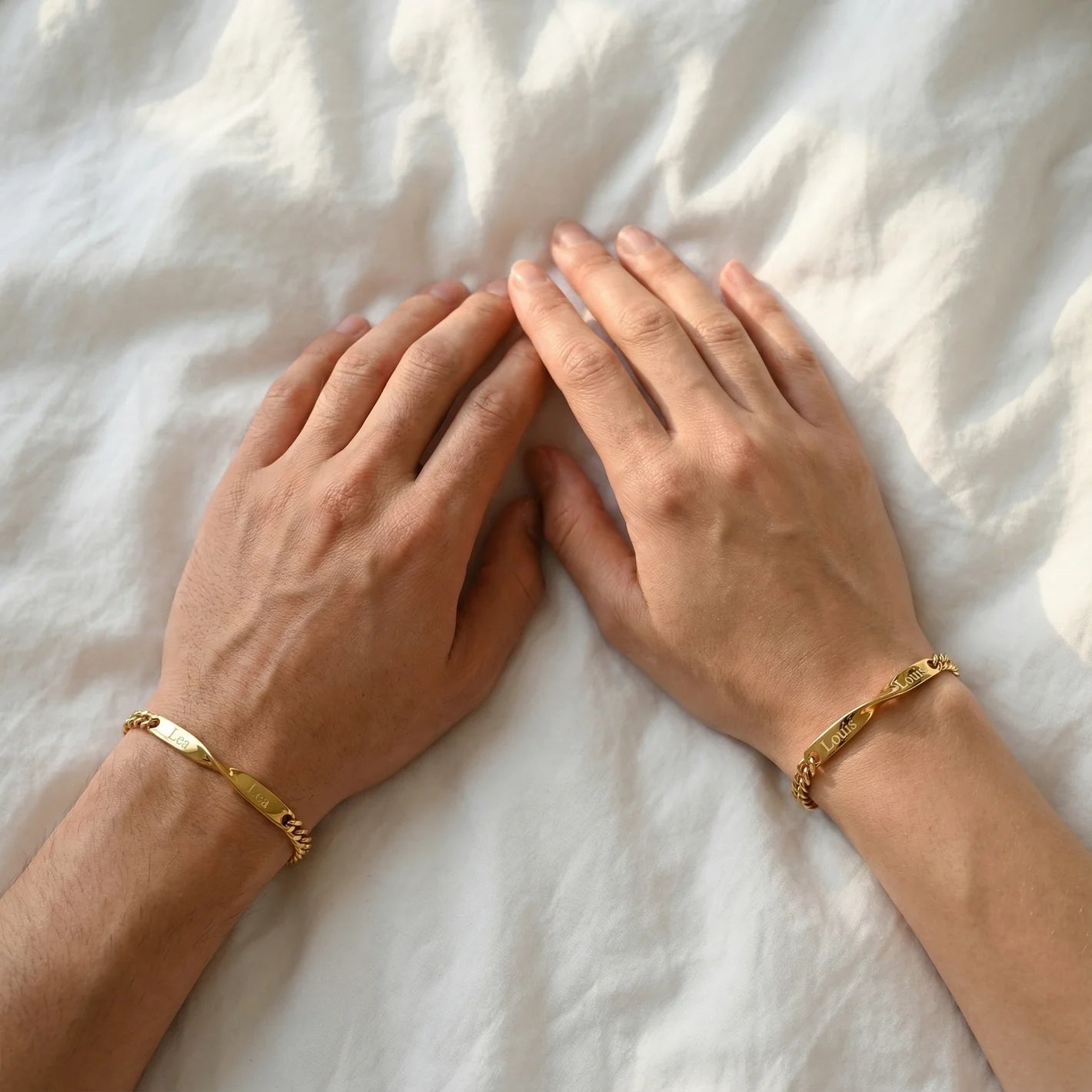 La gravure du nom de votre partenaire rend ce cadeau vraiment unique.Nos bracelets sont fabriqués artisanalement en acier inoxydable 316L de haute qualité et en or 18 carats véritable, ce qui les rend hypoallergéniques et sans plomb ni nickel.